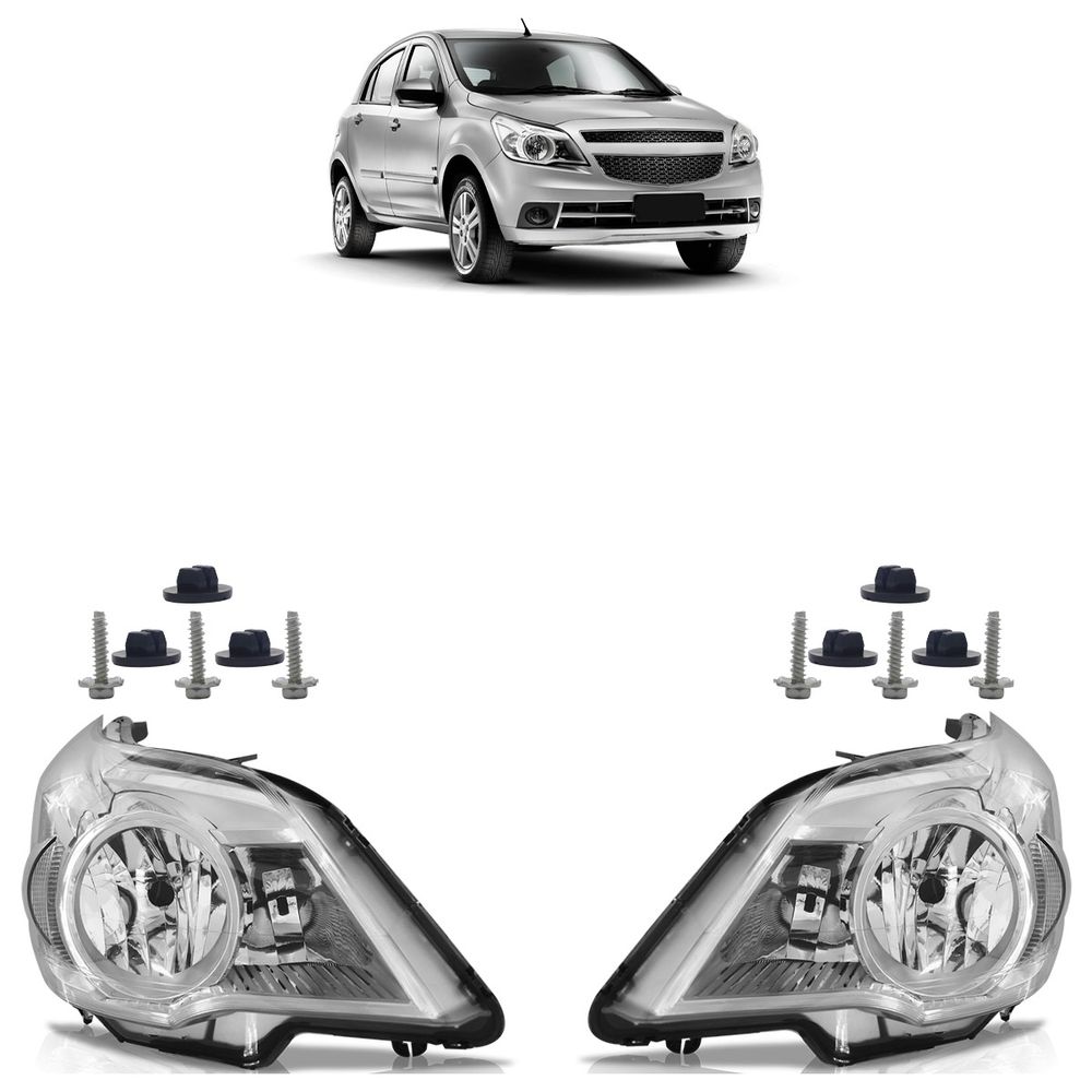 Farol Dianteiro Agile 2009 2010 2011 2012 2013 Máscara Cromada Lente Lisa