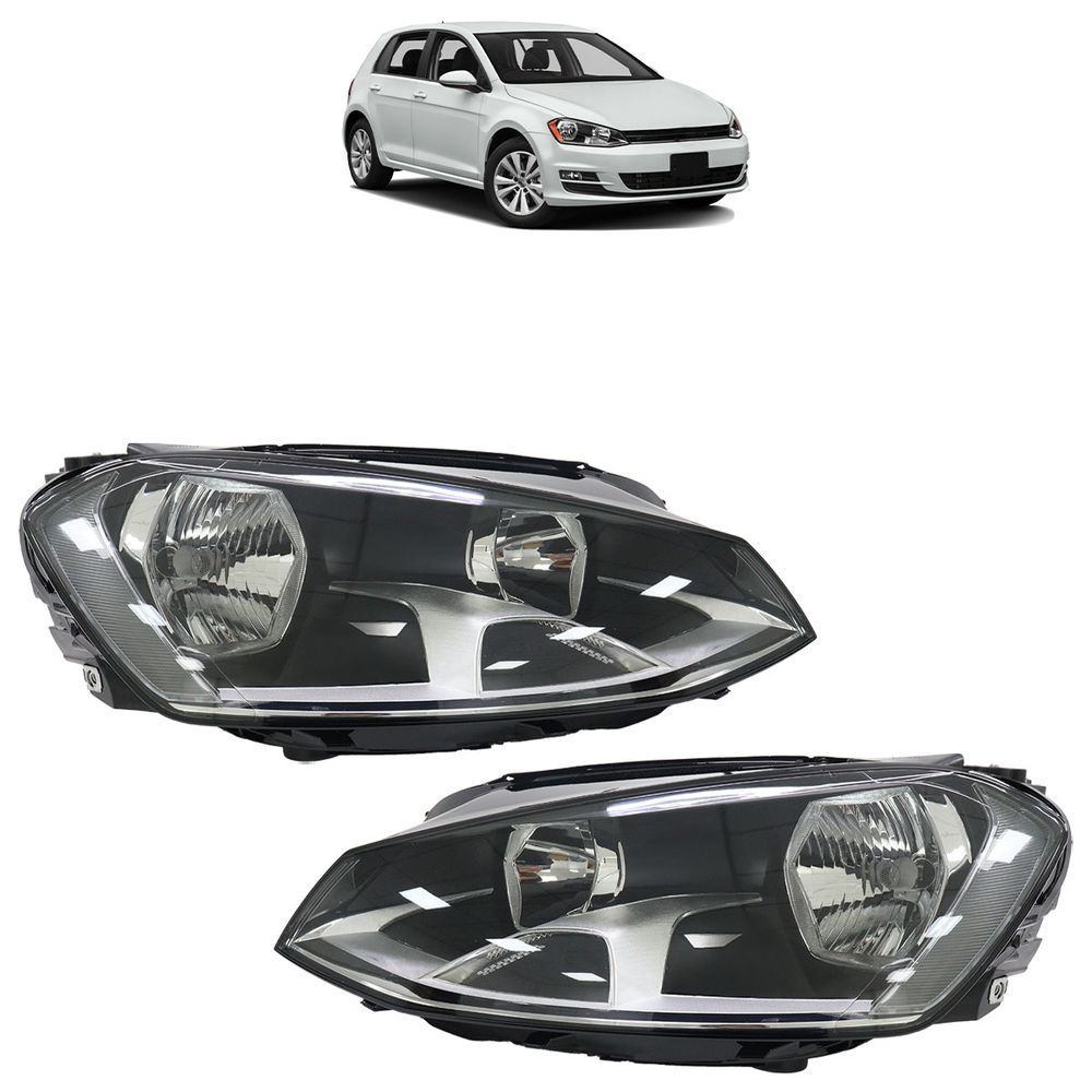 Farol Dianteiro Golf 2008 2009 2010 2011 2012 2013 Máscara Cromada Foco Duplo Lente Lisa Acrilíco