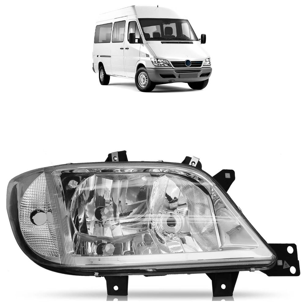 Farol Dianteiro Mercedes Sprinter CDI 2003 2004 2005 2006 2007 2008 2009 2010 2011 Máscara Cromada