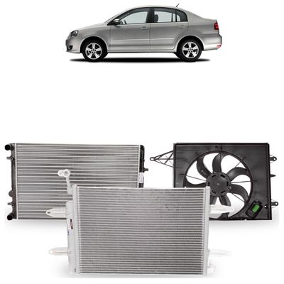 Kit Colisão Volkswagen Polo Sedan 1.6 Flex Manual 2005 2006 2007 2008 2009 2010 2011 2012 2013 2014 Radiador Condensador e Eletroventilador