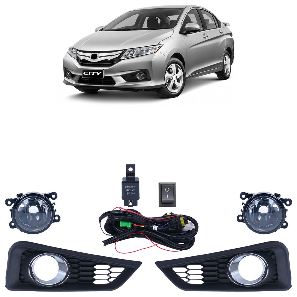 - DESCRIÇÃOKit Par Farol de Milha Auxiliar + Par Grade do Milha Honda City 2015 2016 2017 Botão Modelo Original Aro Cromado
