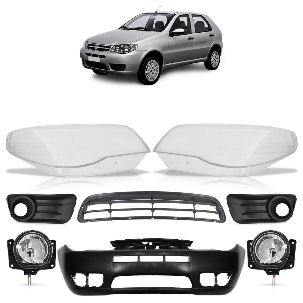 - Kit Fiat Palio Economy 2011 2012 2013 2014 2015 2016 2017 Par Lente do Farol Dianteiro + Par Moldura Grade do Milha Com Furo para Milha + Par Farol de Milha Auxiliar + Parachoque Dianteiro Preto Liso + Grade Inferior Dianteira Preta