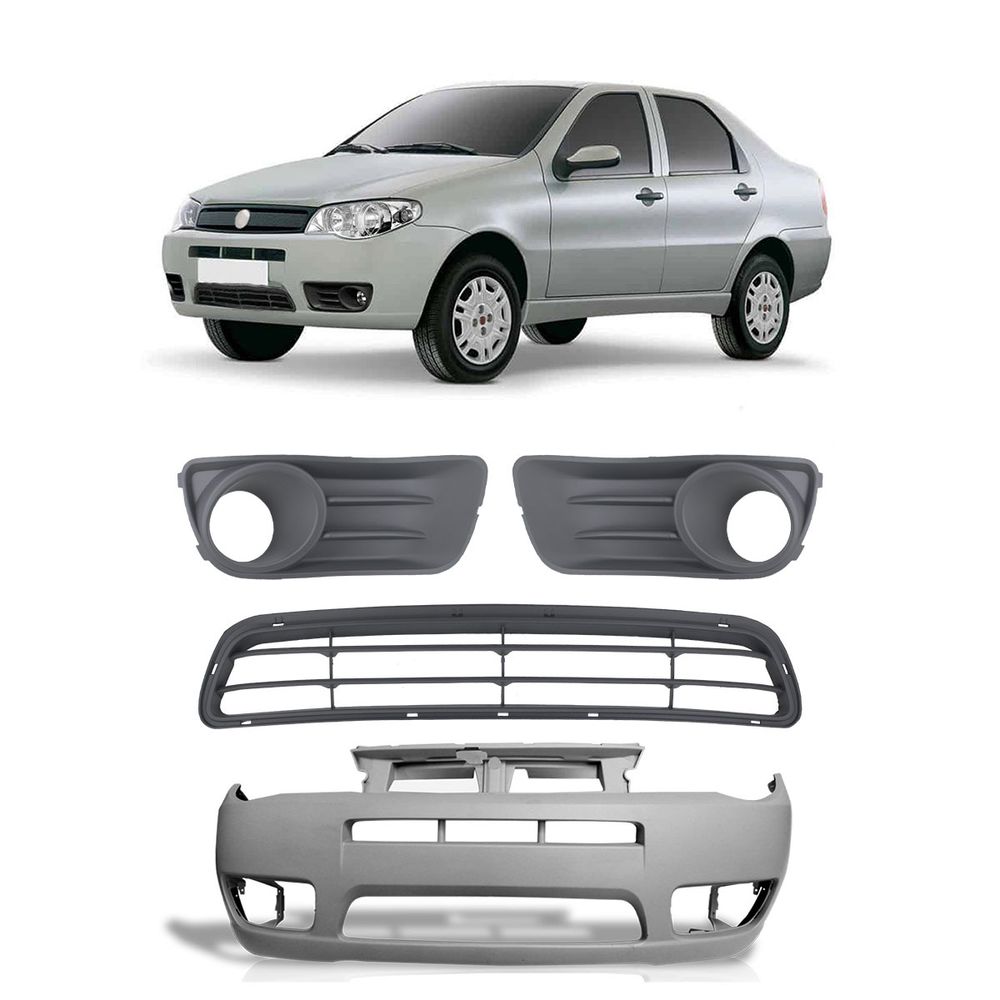 Kit Siena Fire 2011 2012 2013 Parachoque Dianteiro Primer + Par Grade do Milha C/Furo Cinza + Grade Central Cinza