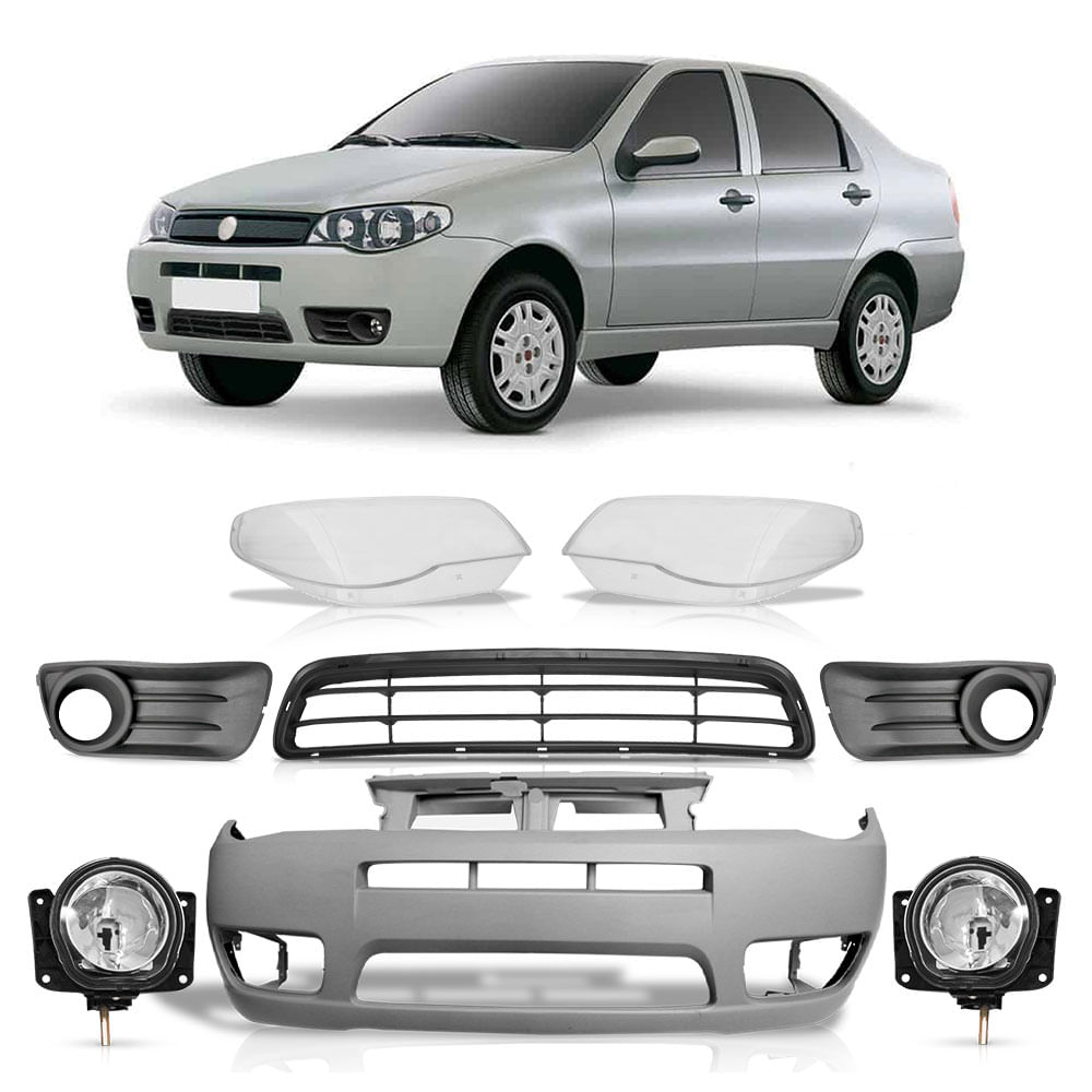 - DESCRIÇÃOKit Siena Fire 2011 2012 2013 Par Lente Farol Dianteiro + Grade Central + Par Grade do Milha C/Furo + Par Farol de Milha + Parachoque Dianteiro Primer